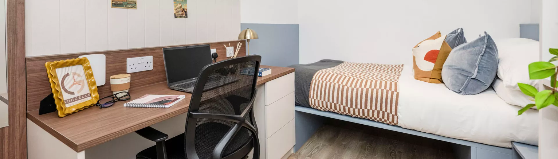 Yes – every room comes fully furnished with a double bed, full-height wardrobe, desk, and plenty of storage, so you can move straight in.